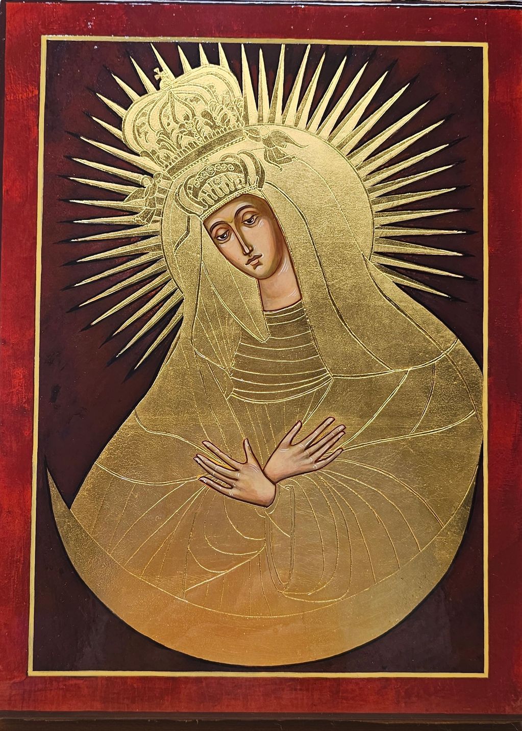 Italian Linden gessoed board, natural pigments, genuine 24k gold.